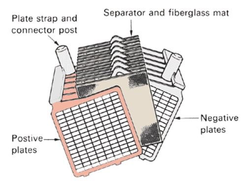 All batteries are manufactured utilizing plates (grids) from lead or an alloy of lead and other secondary metals. A battery will have positive and negative plates to conduct energy.