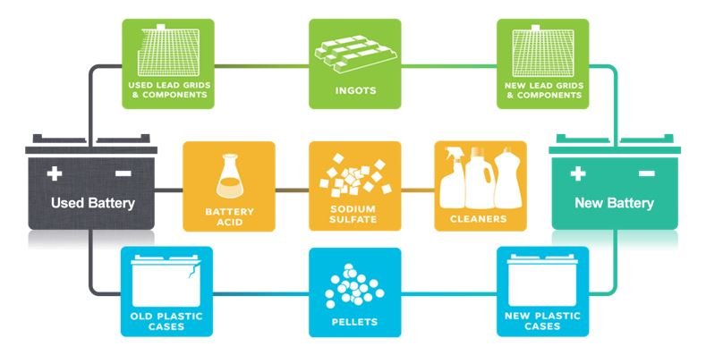Lead-acid batteries top the list of the most highly recycled consumer product. Compared to 26% of tires, 26% of glass bottles, 45% of newspapers and 55% of aluminum cans. 98% of all lead-acid battery are recycled! New lead-acid battery contains 60% to 80% recycled lead and plastic. The lead-acid battery manufacturing industry gains its environmental edge from its closed-loop life cycle. When a spent lead-acid battery is collected, it is shipped to a permitted recycler where the lead and plastic are reclaimed and sent to a new battery manufacturer. The recycling of spent lead-acid batteries can go on indefinitely. That means the lead-acid battery in your car, truck, boat or motorcycle have been and will continue to be recycled many times. This process makes lead-acid battery industry’s recycle programs extremely successful from an environmental and cost perspective.