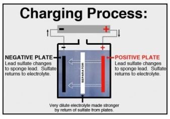 Charging a battery is the reverse of this process, to recharge a battery you must restoring the chemical difference between the plates. This happens when driving and the alternator puts energy back into the battery or you use a battery charger to replace the energy.