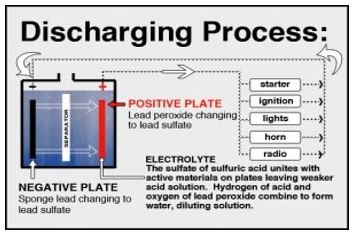 Your lead-acid battery is in a constant process of charge and discharge. When a load is applied to the battery electricity flows out of the battery to what ever you are powering like your starter or radio, your battery will begin discharging.